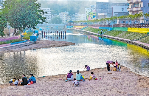 冬日暖阳下,双华镇矮畲河旁传来爽朗笑声。夕阳给五颜六色的堤岸增添一抹金黄色,村民们或带着小孩在沙滩玩沙、或漫步于河堤休闲……自“百千万工程”实施以来,五华县坚持以群众需求为导向,将群众的笑脸作为衡量工作成效的标尺,全力把发展成效转化为看得见、摸得着的变化,让“百千万工程”三年初见成效的答卷写满群众的幸福。