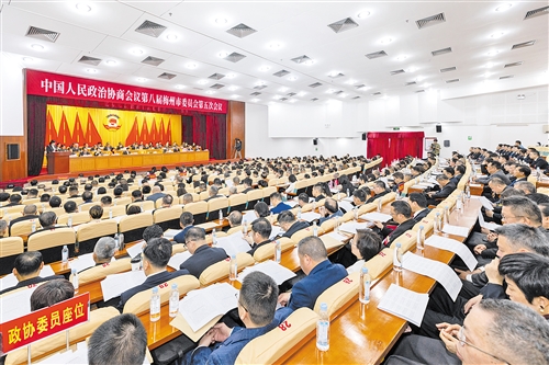 2月5日上午,梅州市政协八届五次会议圆满完成各项议程后胜利闭幕。(连志城 摄)