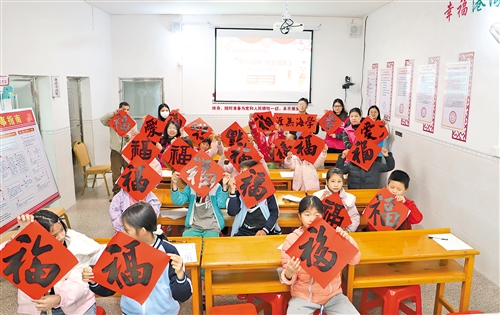 此外,由兴宁市妇联主办的“爱心陪伴,快乐成长”寒假公益托管班在罗岗镇溪东村“幸福港湾”开班。托管班聚焦困难家庭、留守儿童及单亲家庭儿童需求,开设根雕文化、新春对联书写、安全自护与普法课堂,还提供作业答疑辅导,让孩子们在关爱中度过充实的寒假。“我们将持续整合资源、创新形式,为乡村儿童的健康成长保驾护航,让爱与陪伴成为孩子们最温暖的新春礼物。”罗岗镇相关负责人说。