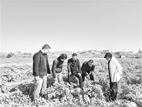 天河区驻兴宁市坭陂镇帮扶工作队和科技特派员团队深入基地了解种植情况。(受访者供图)