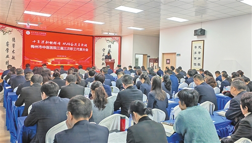 本报讯 (记者严海苑 通讯员黄蕊)1月31日,广州中医药大学梅州医院(梅州市中医医院、梅州市田家炳医院)三届三次职工代表大会暨2025年度工作总结表彰大会召开,回顾总结过去一年工作和“十四五”发展成效,谋划部署2026年工作,表彰先进集体和个人。广州中医药大学党委常委、副校长史亚飞,市总工会、市财政局、市卫生健康局等单位相关负责人以及医院领导班子、职工代表等参加会议。