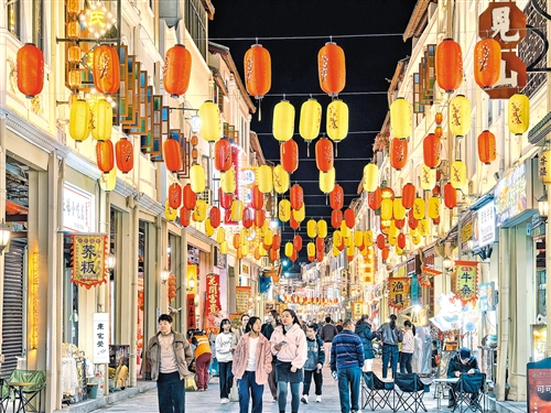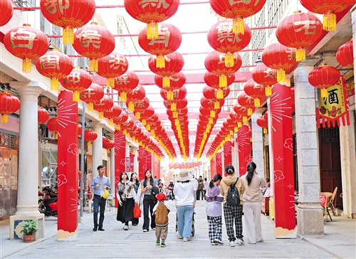 梅江区凌风西路步行街、梅县区松口古街等景点也“梳妆打扮”了一番,换上新春盛装喜迎八方来客,灯笼高悬、彩饰摇曳,处处洋溢着喜庆祥和的节日气息。“远远望见大红灯笼高挂,就知道春节的脚步近了!”游客李娟指着松口古街的灯笼笑着说,古街别出心裁地挂起“百家姓”灯笼,每一盏都承载着姓氏文化,既增添了浓浓的年味,更象征着一种深厚的文化认同和归属感。