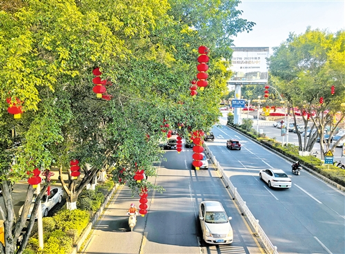 灯笼作为中国传统文化的象征,寓意着兴旺发达和幸福美满。在梅城梅江大道、剑英大道、府前大道等主干道,道路两旁红火的灯笼不仅扮靓了城市,更让市民提前感受到了马年新春的温暖和喜悦,新春氛围感已拉满。“为进一步营造喜庆祥和的新春氛围,我们在宪梓大道、进城大道等城区主要路段悬挂灯笼,同时在梅县区人民广场、高铁梅州西站周边等重要地方进行绿化景观提升。”梅县区住房城乡建设局相关负责人说。