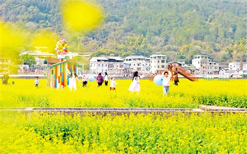 南口镇在侨乡村改造升级了油菜花公园,巧妙盘活冬季闲置的农田资源打造“赏花胜地”。(连志城 摄)