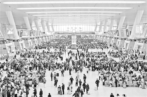 2月23日,旅客在杭州火车东站候车厅候车。 记者从中国国家铁路集团有限公司获悉,2月23日正月初七是春节假期最后一天,全国铁路迎来返程客流最高峰,预计发送旅客1850万人次,计划加开旅客列车2297列。 (新华社发)