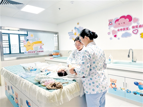 在服务内容上,市妇幼保健院产后母婴康复中心涵盖多维度核心项目:多学科医疗团队定期查房;科学母婴护理覆盖日常照护全场景;中医调理、产后子宫复旧、乳腺护理等专项服务;特色姜疗洗头等个性化服务;针对新生儿的游泳、抚触、早教等服务。此外,该中心还开设新手父母和爷爷奶奶课堂,系统传播科学育儿知识,让家长真正掌握核心育儿技能。该中心负责人周晓娟表示,该中心致力于提供全生命周期服务,从孕期指导、产后康复到儿童生长发育监测,构建起贯穿不同阶段的连续性健康支持体系。