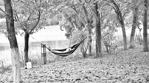 有市民将摇篮直接系在公园的树木枝干上,在摇篮里大幅度摇荡,树枝被拉扯得剧烈晃动,树皮出现明显磨损痕迹。(图片均为陈坚平摄)