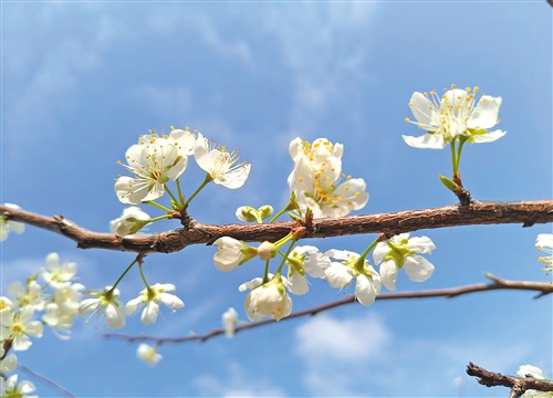 由于还未见嫩叶,又有蜂蝶起舞,把花儿衬托得更加迷人,观赏性极佳。在远处山上,满眼苍翠,娇艳欲滴,让人爱怜。此番美景,吸引众多游客慕名而来,络绎不绝,构成一道蔚为壮观的风景线。