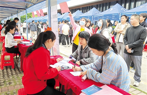 招聘会现场人潮涌动、气氛热烈。众多求职者穿梭于各个招聘展位之间,或仔细查看岗位信息,或与企业招聘工作人员坦诚交流,围绕岗位要求、薪资待遇、晋升空间、福利保障等话题展开深入沟通。记者看到,进场招聘企业提供岗位涵盖智能制造、电子信息、家政服务、文化传媒等多个领域,既有基础操作岗位,也有技术型、管理型岗位,充分满足广大求职者不同层次的需求。博敏电子股份有限公司招聘工作人员梁先生表示:“我们公司订单充足,此次招聘包括操作员、英语管培生、运维工程师等,现场咨询人员比较多,不到1小时已有6名求职者达成初步就业意向。”在珠三角务工多年的温先生此次返乡后打算留梅发展,他在招聘会现场仔细咨询了多家制造业企业的技工岗位后表示:“在外打工不如在家门口就业,既能挣钱,又能照顾家人。今天看了几家企业,有合适的就定下来。”