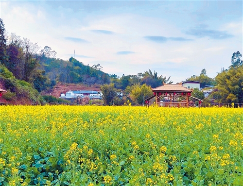 本报讯 近日,梅县区石坑镇枫林村20多亩油菜花美丽绽放,与青山、村舍相映成趣,绘就一幅清新动人的客家田园画卷。