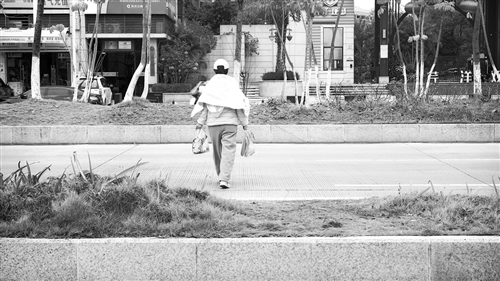 图为一市民趁车流量少的间隙快速冲过一侧机动车道。(陈坚平 摄)
