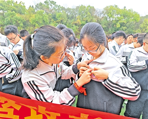丰顺中学将成人礼与百日誓师相结合,成为此次活动的一大亮点。活动中,丰顺中学学子与父母手挽手跨越“马到成功”“一马当先”的成人门,温馨的背景音萦绕耳畔,家长为孩子佩戴红围巾,学子向父母行三鞠躬礼并送上写满梦想的明信片,在成年的仪式中感悟责任与担当。广东梅县东山中学则以“东君骋骥 中宇登魁”为主题举办活动,寓意东山学子如骏马驰骋、勇毅前行。校长为学子送上专属的2026届“圆梦”纪念徽章,学子们郑重地将徽章别在胸前,将学校的祝福与期盼悉心珍藏;授旗仪式上,绣有“圆梦东山”的战旗在学子手中传递,随后,各班学子列队跨越成功门,步履坚定奔赴梦想。