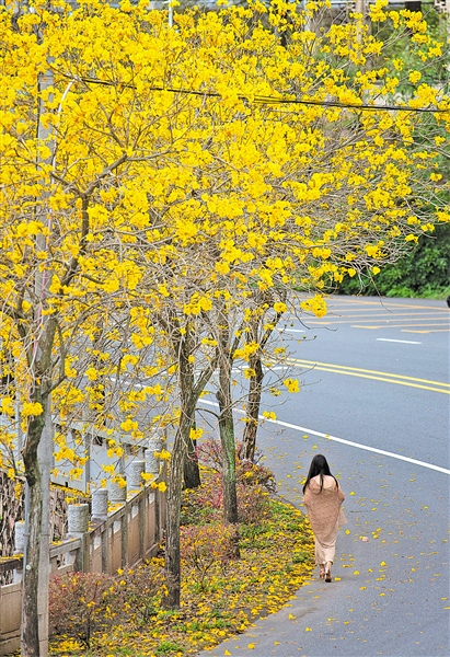 春风正好,繁花正盛。不妨放下忙碌,约上亲友,漫步平远紫缤路的金色花廊,赴一场与黄花风铃木的春日之约。(朱双玲)