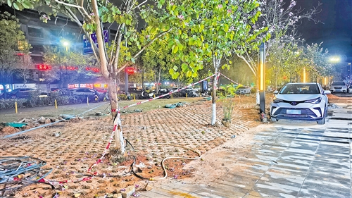 本报讯 (记者陈坚平)近日,有市民向本报反映,梅城侨乡路一小区门口公共绿化带被相关商铺业主私自组织人员挖掘、铲除原有植被,铺设地面用于增设车位,损害业主们的公共利益。