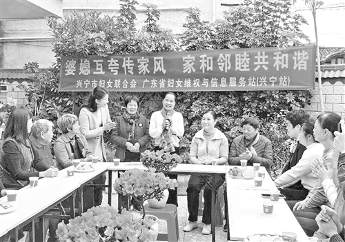 本报讯 (记者陈思杰)日前,由兴宁市妇女联合会、广东省妇女维权与信息服务站(兴宁站)主办的“婆媳互夸传家风·家和邻睦共和谐”主题活动举行。活动设置座谈交流(如图,受访者供图)、客家美食制作环节,共有10对婆媳参与。