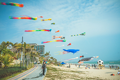 广东省汕尾市城区金町滨海旅游区举办风筝节。