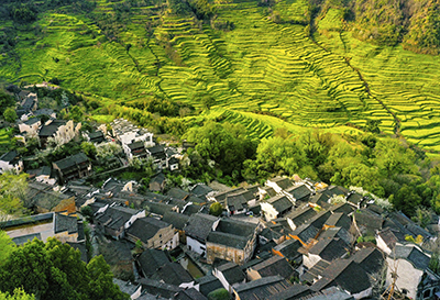在江西省上饶市婺源县篁岭景区,梯田与古村落相映成趣。