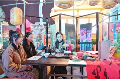 近日,第三届“520”安徽文旅惠民消费季文旅商融合主场活动在合肥市蜀山区新粮仓文化商业合集举行。活动现场开展了情景剧和庐剧等文艺表演,发布当地文旅商融合发展战略举措等,设置金融消费区、消费直播区、“安徽有礼”旅游商品专区等,举行商户限时折扣活动,为市民游客送上多个文旅商融合“大礼包”。图为市民观看体验传统茶文化。