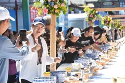 近日,“好尼”蒙自过桥米线文化周在云南省红河哈尼族彝族自治州蒙自市过桥米线小镇启动。通过品牌授权、产业赋能、文化展演等多元形式,蒙自市将深挖“蒙自过桥米线”产业潜力,传承制作技艺,扩大品牌授权影响力,推动门店全球布局与品质提升,助力蒙自过桥米线从地方美食跃升为国际文化符号。文化周活动将持续至11月9日。图为游客在蒙自市米线小镇品尝过桥米线。