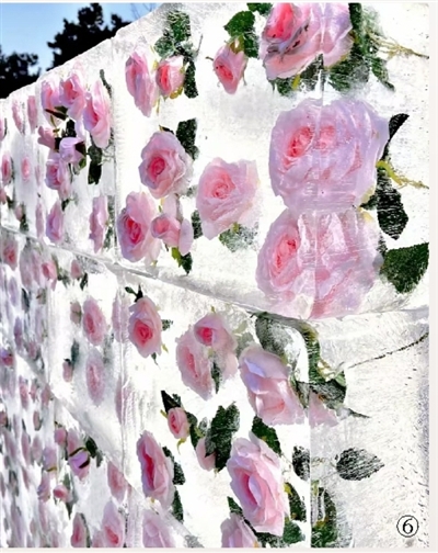 图⑥:沈阳市南湖公园设立的冰封玫瑰墙。