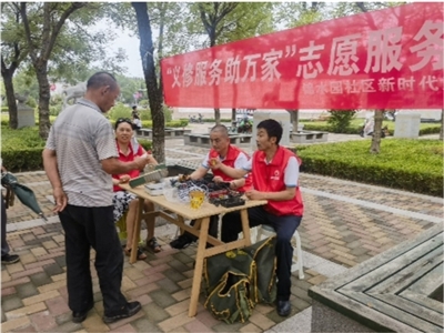 济南市平阴县锦水园社区开展“义修服务助万家”志愿服务活动。