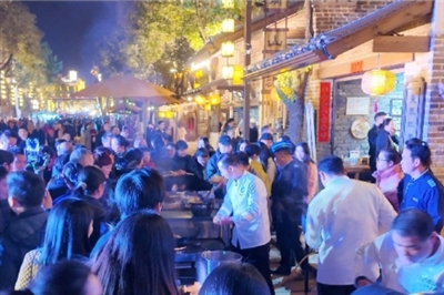 夜幕降临,中国城市报记者沿衡山渡步行街探访时发现,一场原创的、行进式的沉浸式主题文化演出贯穿“厨神汇”活动始终,多个篇章精彩纷呈:《烟火》篇章以码头烟火场景诠释衡阳风味的“火之韵”;《厨艺传承》篇章通过代际对话展现古法技艺的生生不息,让游客在品味美食的同时,感受到文化的厚度……演出和活动过程中,美食榜单发布、短视频传播等多元形式,亦将“衡阳宴”饮食文化转化为游客可感知、可参与的沉浸式体验。其中,“名店名厨名菜”“早餐与夜宵必吃”等榜单的发布,还直接带动了相关店铺消费的增长。例如上榜的“靠山王”门店活动期间日均接待量突破500多人次,不少游客临走前还会购买真空包装的特色美食作为伴手礼馈赠亲友。