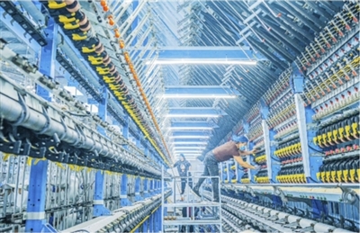 临近年末,全国各地冲刺全年目标任务,企业生产、项目建设热火朝天,打好全年“收官战”。图为12月11日,江苏省宿迁市宿城区龙河镇一纺织科技企业生产车间里,工人在智能化生产线上忙碌,赶制订单产品。