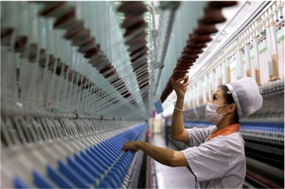 近年来,山东省枣庄市持续加大企业技术改造推进力度,引导企业进行数字化和自动化改造升级,培育打造“智慧企业”“无人工厂”“无人车间”等新型产业模式,助力企业实现降本、提质、增效的发展目标。图为近日,工人在枣庄经济开发区一家企业的智能化生产线上加工高端纱线。