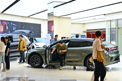 2025年12月30日,江西省南昌市红谷滩区一大型商场里,消费者在了解试乘新能源汽车,咨询2026年消费品以旧换新补贴新政策。