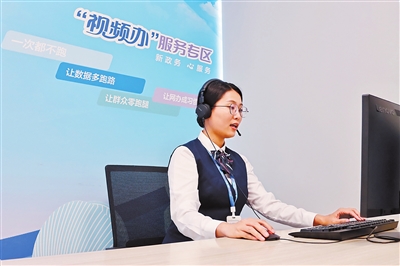 3月3日,在珠海市民服务中心“视频办”服务专区,视频客服通过视频指导市民办事。 本报记者 钟凡 摄