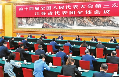 江苏代表团审议认真,气氛活跃。赵建军、徐光辉、张俊杰、李肖娜、缪汉根、柯军等6位代表分别就加快绿色低碳转型发展、打造产业科技创新中心、推动转化医学建设、建设和美社区、推动传统产业发展、保护传承传统戏曲等发言。