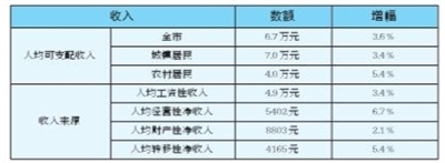 分城乡看,我市城镇居民人均可支配收入7.0万元,比2023年增长3.4%,农村居民人均可支配收入4.0万元,比2023年增长5.4%。农村居民人均可支配收入增速快于城镇居民两个百分点。