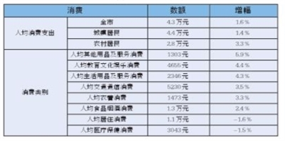 从广东全省情况看,2024年,广东居民人均可支配收入5.1万元,同比增长4.4%。分城乡看,城镇居民人均可支配收入6.2万元,同比增长3.9%;农村居民人均可支配收入2.7万元,同比增长6.3%。2024年,广东居民人均消费支出3.6万元,同比增长4.3%。分城乡看,城镇居民人均消费支出4.1万元,同比增长4.4%;农村居民人均消费支出2.3万元,同比增长3.8%。