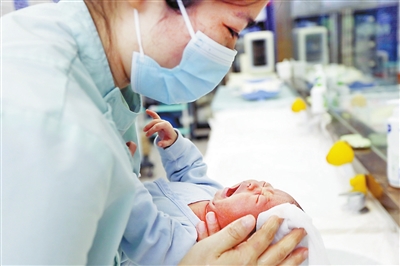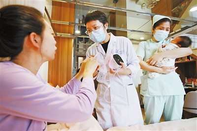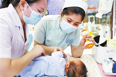 专业的托颈手法,托住的是新生儿的健康,也是窗外母亲的期盼。