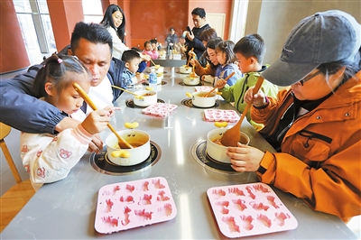 接着,大家移步金湾区非物质文化遗产——红旗古法制糖工艺展示区,体验古法榨糖。在制糖师傅的带领下,市民代表先将浓缩后的甘蔗汁放进小锅,一边熬制一边搅拌,直到甘蔗汁逐渐泛白、呈半凝固状,再倒进模具定型……大家兴致勃勃地体验着每一道工序,空气中弥漫着浓郁的甜香。“原来我们平时吃的糖果是这样制作出来的呀,今天我不仅买了糖果,还体验了古法制糖,太开心了!”李瀚小朋友兴奋地说道。