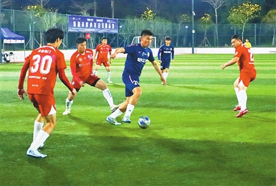 本报讯 记者张映竹报道:驰骋绿茵、赛场争雄。夜幕降临,珠海市大镜山社区体育公园里呐喊声此起彼伏,汇成一股热浪袭面。