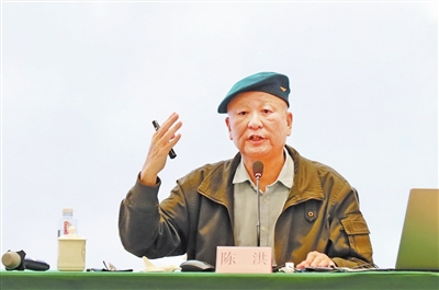 2025年中科院科学家科普讲座现场。陈洪教授作《信息化时代的空中力量和中国军人》讲座。本报记者 钟凡 摄