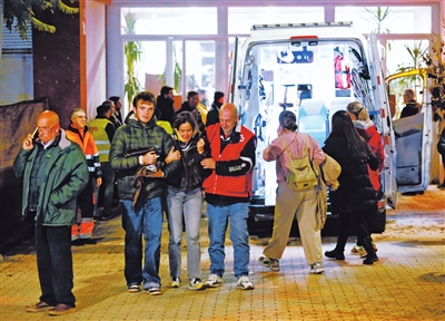 1月18日,在西班牙南部科尔多瓦省阿达穆斯,人们协助列车脱轨事故中的伤者前往医疗机构接受治疗。