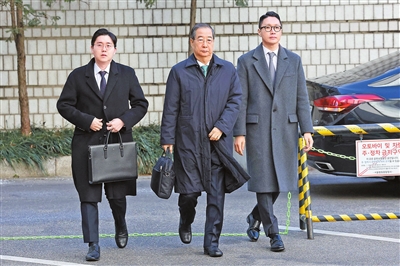 1月21日,在韩国首尔,韩国前国务总理韩德洙(中)准备出席庭审。 新华社发