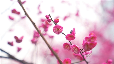 本报讯 (记者 傅博文 通讯员 许威威 史欣怡) 眼下,限时“梅”景已迎来最佳观赏期,在文一西路、文二西路、余杭塘路、创景路、联创路……不经意间就能邂逅盛开的梅花,片片红霞“飘”在眼前。