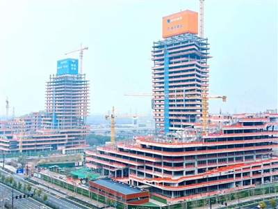 浙江人才大厦项目2幢塔楼设计高度分别为185米、165米,计划于2026年底基本建成。目前,该项目正在进行塔楼主体施工,东区塔楼已建设至24层、约120米,西区塔楼已建设至20层、约100米,它们隔河相望,造型独特。