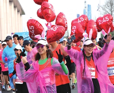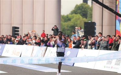 在浪漫樱花雨中,今年获评“浙江金标马拉松”的杭州梦想小镇半程马拉松迎来了第6届赛事。