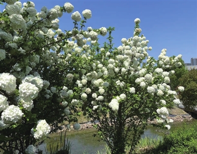 本报讯 (记者 吴山楚寒 王媛媛 通讯员 许威威 闲林微融媒体中心 王璐琳) 文二西路梦想未来绿道两侧的木绣球迎来了最佳观赏期,洁白花团绵延绽放,如梦似幻的“雪球花海”吸引众多市民赏花拍照。这番美景背后,离不开园林绿化养护工人的精心呵护。
