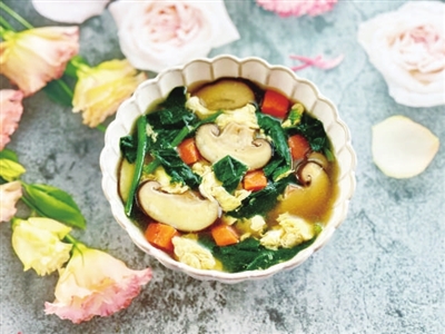 食材:菠菜、鲜香菇、鸡蛋、胡萝卜