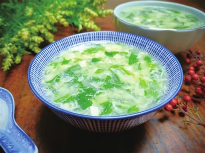 食材:香菜、鸡蛋、豆腐、葱花、淀粉、胡椒粉