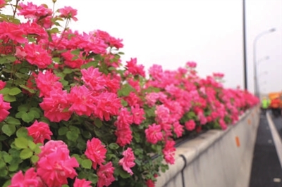 本报讯 (记者 朱云岚 景宇 通讯员 计丽艳) 暮春时节,驱车行驶在运溪高架余杭段上,可以看到长达20多公里的“空中花廊”。7.3万盆月季竞相绽放,将高架护栏装点成流动的花毯,美不胜收。