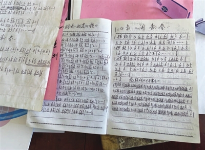 翻开泛黄的笔记本,里面满是李法庭誊抄的乐谱,至少有200多首曲子。因担心在家练习唢呐影响邻居,每次他都会骑电动三轮车到最近的山头,对着树木、大地和天空吹。