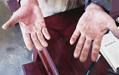 为了还清债务,李法庭常常天还没亮就起床,骑着电动车到工地打工,有时还要回家照顾孙子、儿子和妻子。他的双手因常年劳作而布满老茧,腰也变得更弯了。