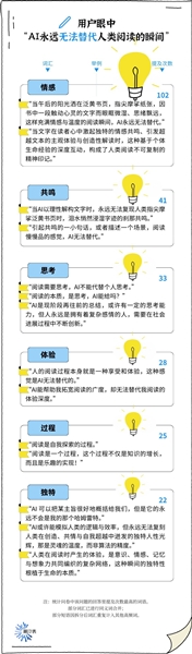 那么,亲自阅读的无可替代性究竟在哪儿?问卷的最后提出了一个开放性的问题:用一句话描述“AI永远无法替代人类阅读的瞬间”。