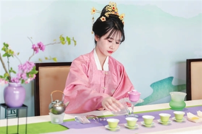 非遗茶空间“宴茶·径山筑”则将宋代茶宴升级为“生活美学秀”。主理人周颖创新推出茶香虾、茶香豆干等“茶餐”,让游客“以舌尖品味历史”。“年轻人要的不只是文化符号,更是沉浸式的参与感。”周颖说。